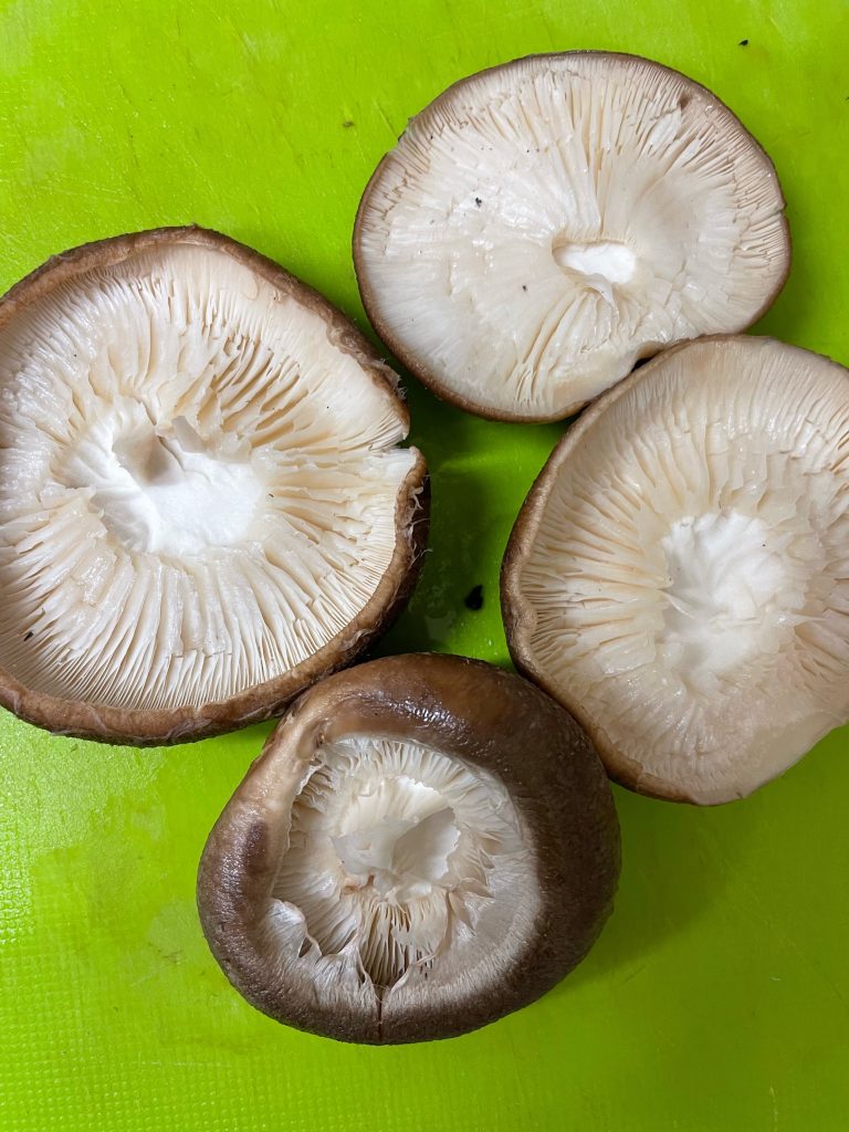 ①椎茸のいしづきを落として、洗ってキッチンペーパーで水分をふき取る